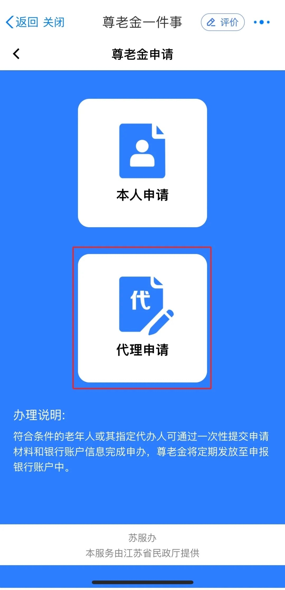 打开“苏服办”(APP、支付宝小程序),在首页搜索“尊老金一件事”进入服务。