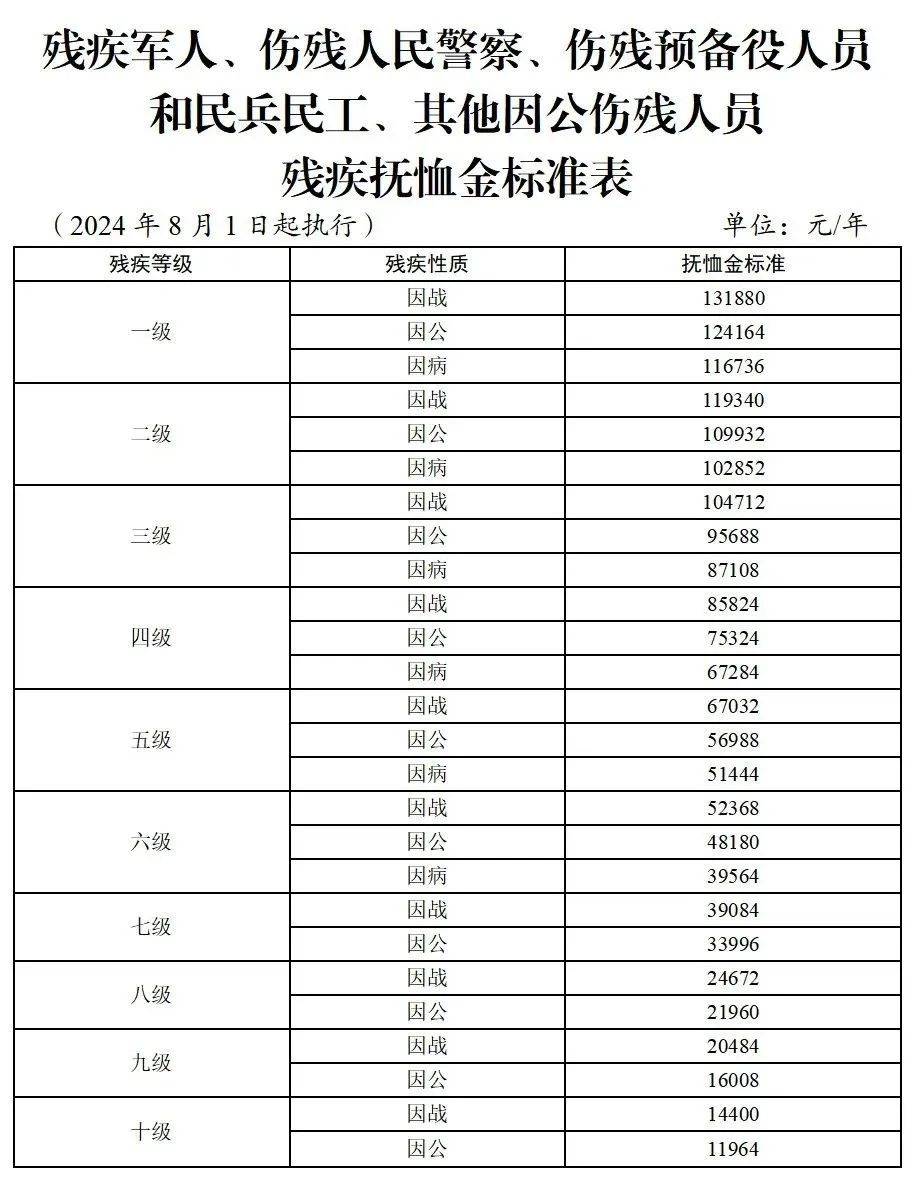 经研究,决定自2024年8月1日起调整部分优抚对象等人员抚恤和生活补助标准,现将有关问题通知如下: