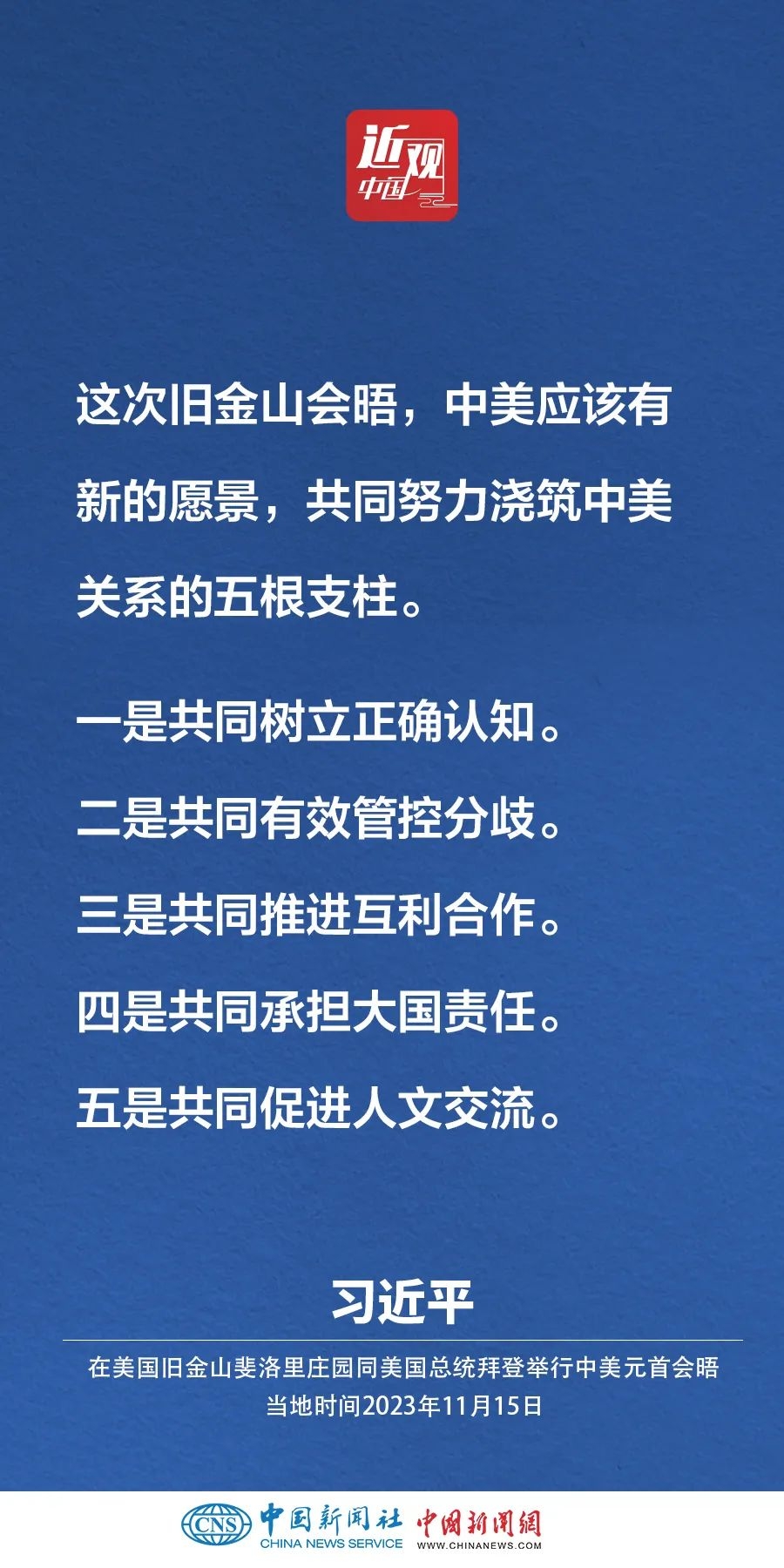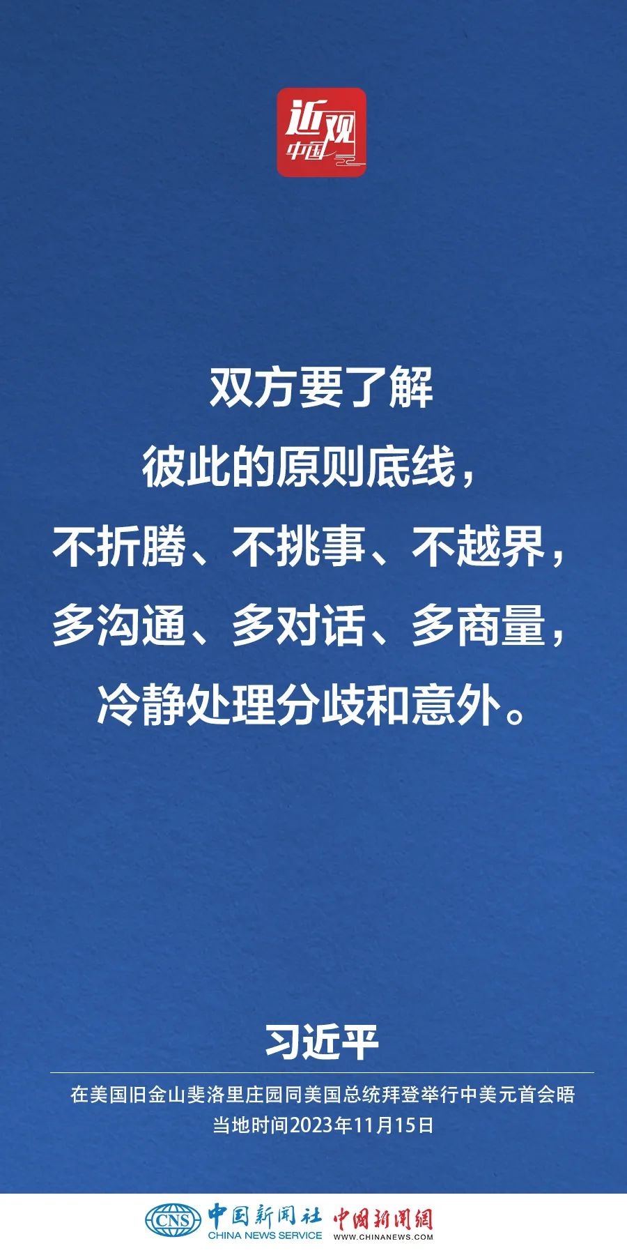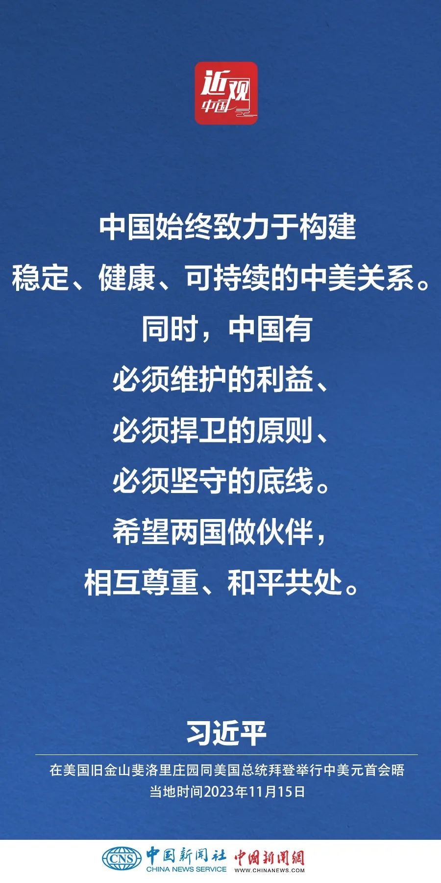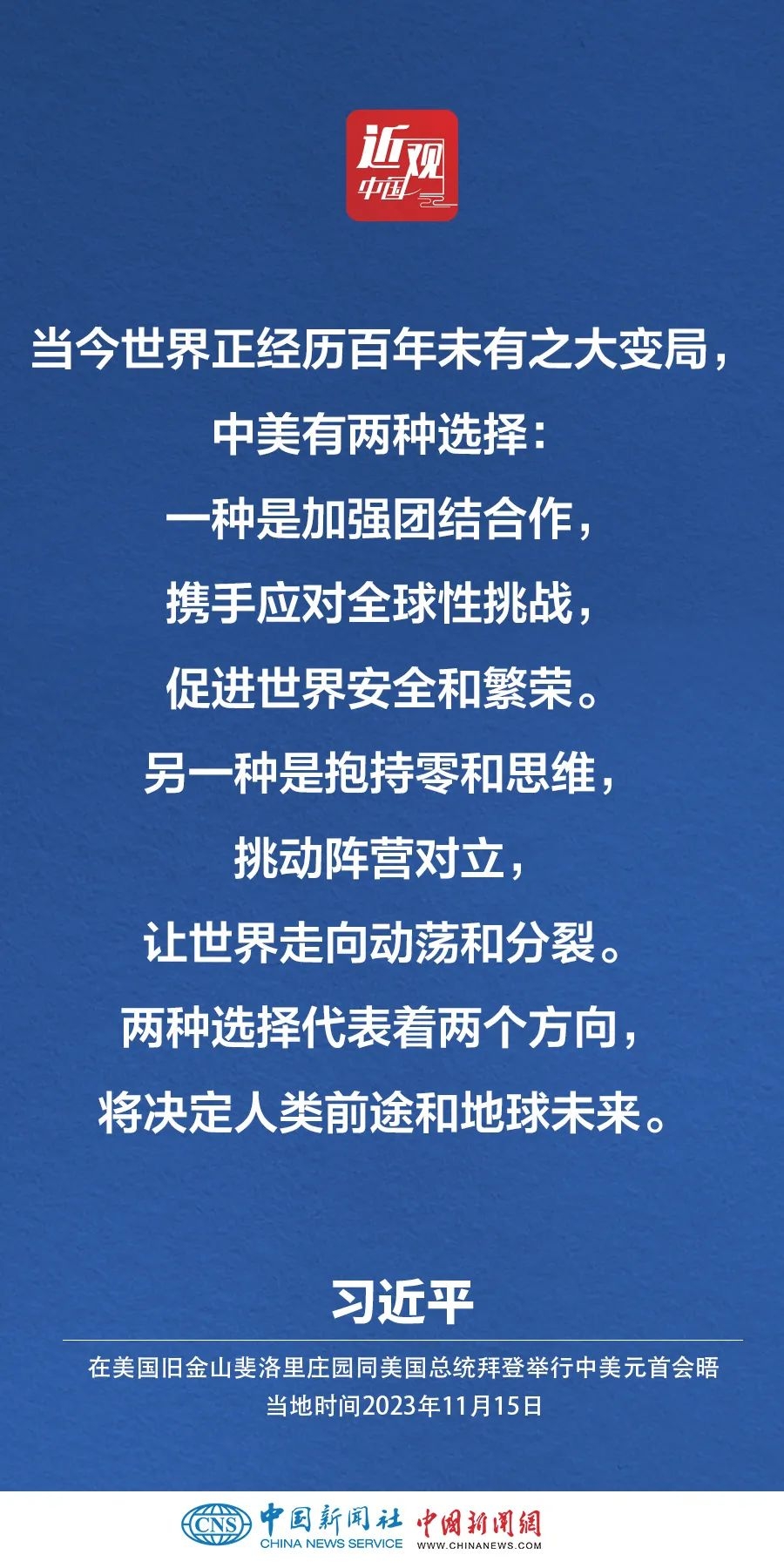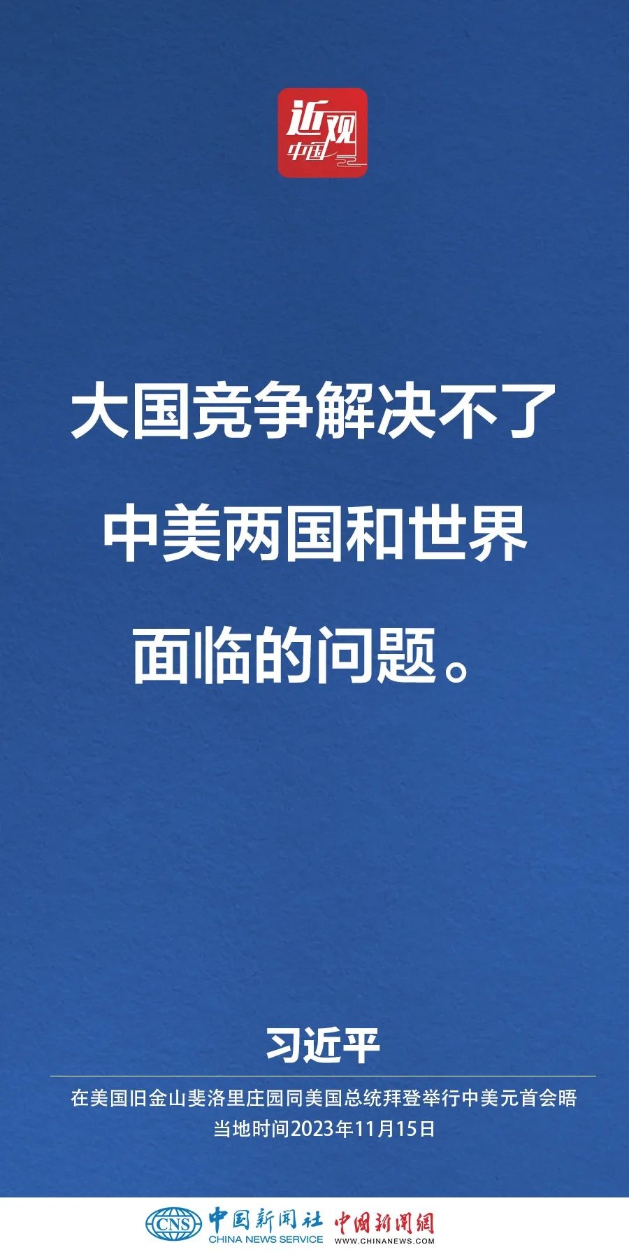 当地时间11月15日,中国国家主席习近平在美国旧金山斐洛里庄园同美国总统拜登举行中美元首会晤。习近平指出——