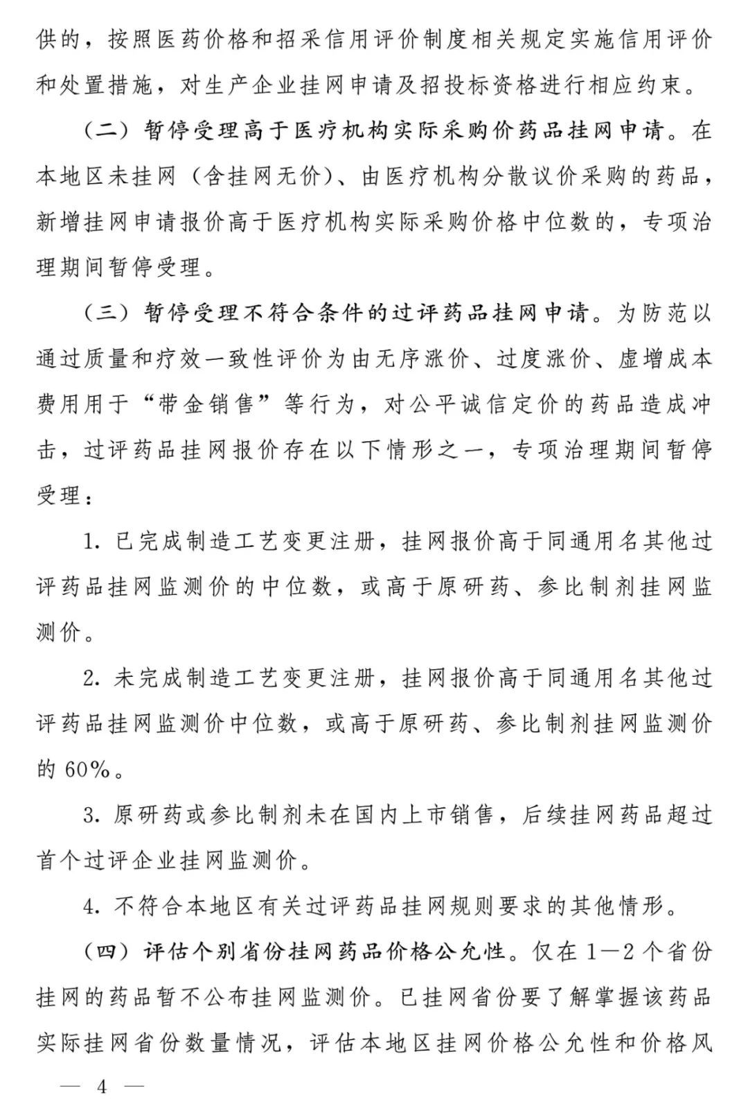 本次药品挂网价格治理,也同样把增进市场公平竞争、维护良好价格秩序作为最根本的出发点,强调纠偏和止损,推动价格公平诚信、透明均衡,不是片面追求降价。监测价不是对标全国最低价格,而从现有的交易价格出发,使用统计方法,用中位数、众数等把具有公允性的交易价格找出来。监测价本身是企业自主制定、能够保障供应的价格水平,在企业可承受范围内。对企业来说,是均衡区域间价格,是局部纠偏,不会出现普遍大幅降价情况。