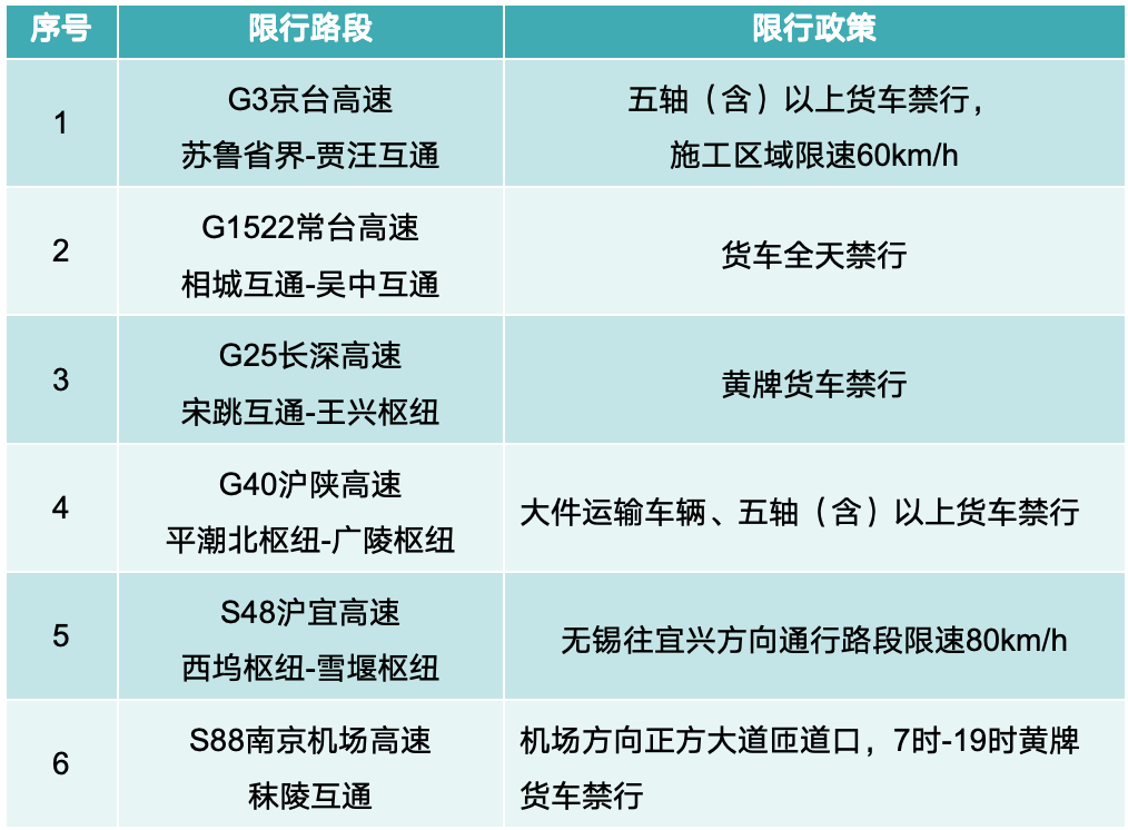此外,G25长深高速灌云南主站往南京方向,S39江宜高速孟河双向入口收费站临时关闭。