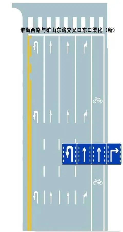 ·调整西进口车道布局,将外侧左转车道调整至中间,同步施划左弯待转区,提高左转通行效率;