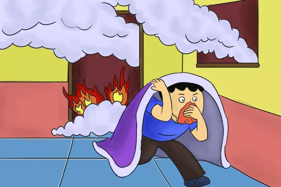 ▪火灾中对人威胁最大的危险是有毒烟雾。可用毛巾、口罩打湿后掩口蒙鼻,防止烟雾中毒、窒息。压低身姿贴近地面匍匐撤离。