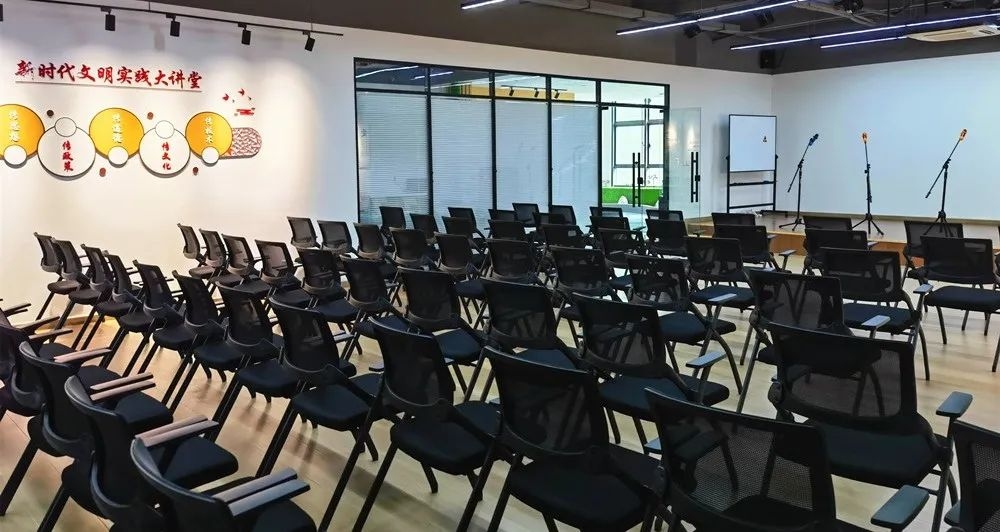 铜山区新时代文明实践中心建在秀美的娇山湖畔,是一所花园式中心,总面积约2000平方米,共3层。