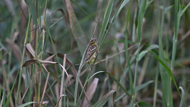 由于拍摄当天风力较大,芦苇上下浮动,杨福建对拍摄效果不太满意。于是次日,他抱着碰碰运气的想法,再次来到房村镇王庄村。惊喜的是,他在同样的地点再次寻觅到了黄胸鹀的踪迹。