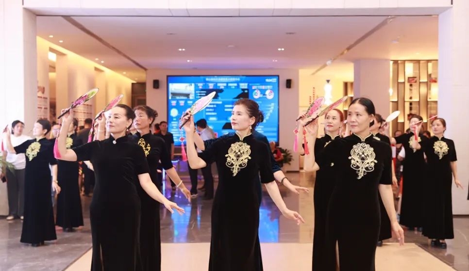 一楼,广场舞展演、模特走秀、非遗文化剪纸……