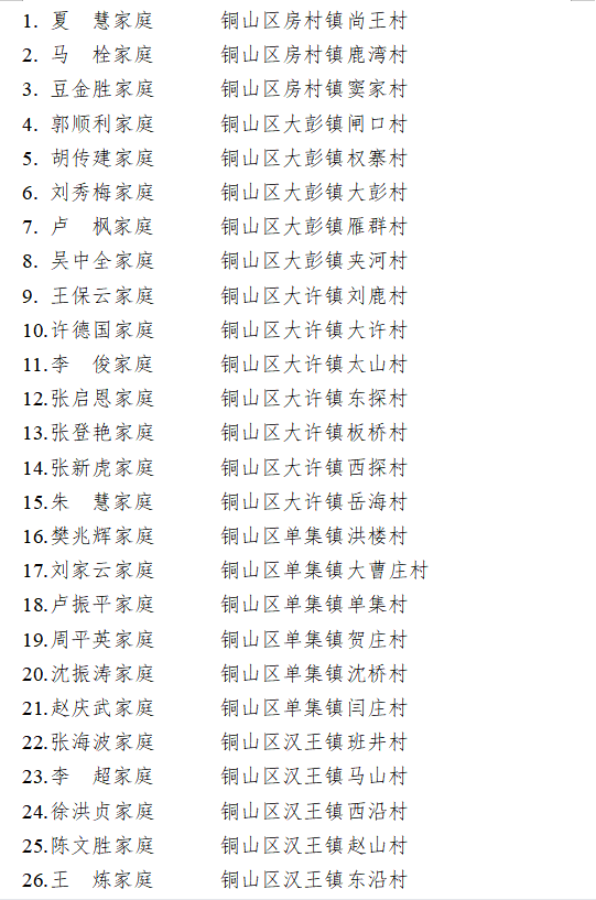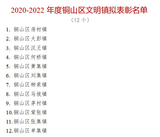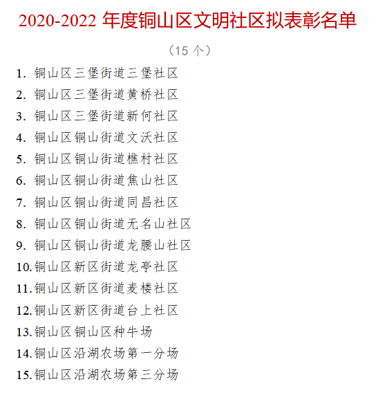根据区文明委《关于组织开展2020-2022年度铜山区文明村镇、文明单位(社区)、文明校园、文明家庭评选工作的通知》文件要求,区文明办组织开展了评选推荐工作。通过自愿申报、逐级推荐、征求意见、综合审定的工作流程,确定符合条件的镇12个,村187个,社区15个,单位104个,校园71所,家庭108户。