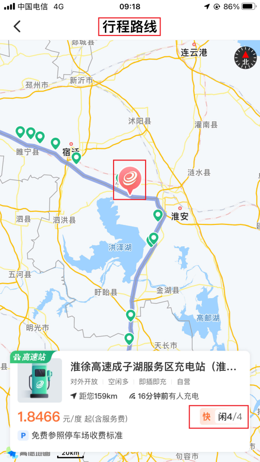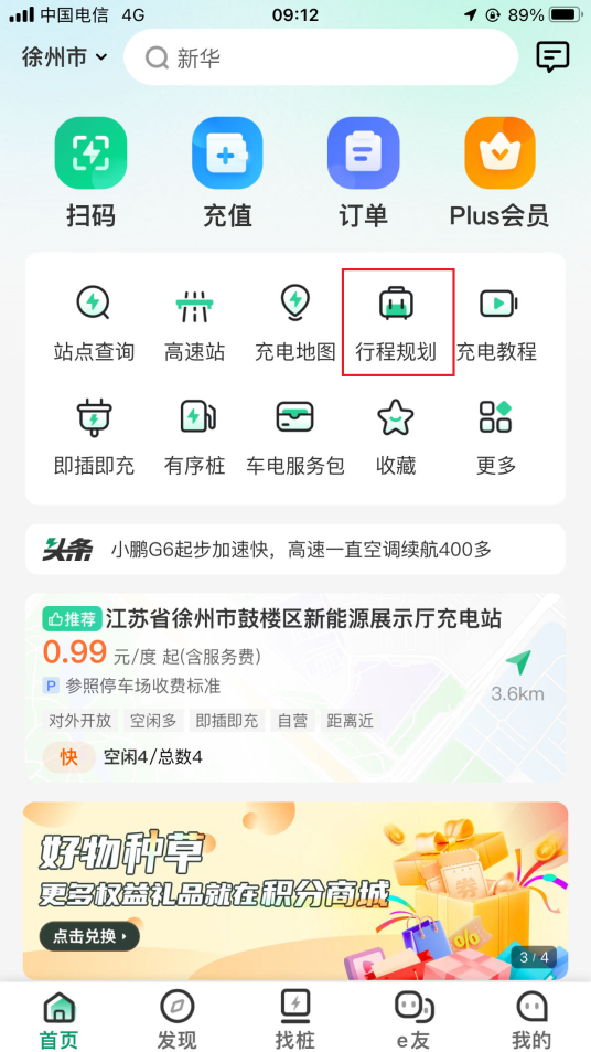 出发前可通过e充电App中的“行程规划”和“找桩”功能,提前了解路途中充电站分布情况及充电桩空闲状态。