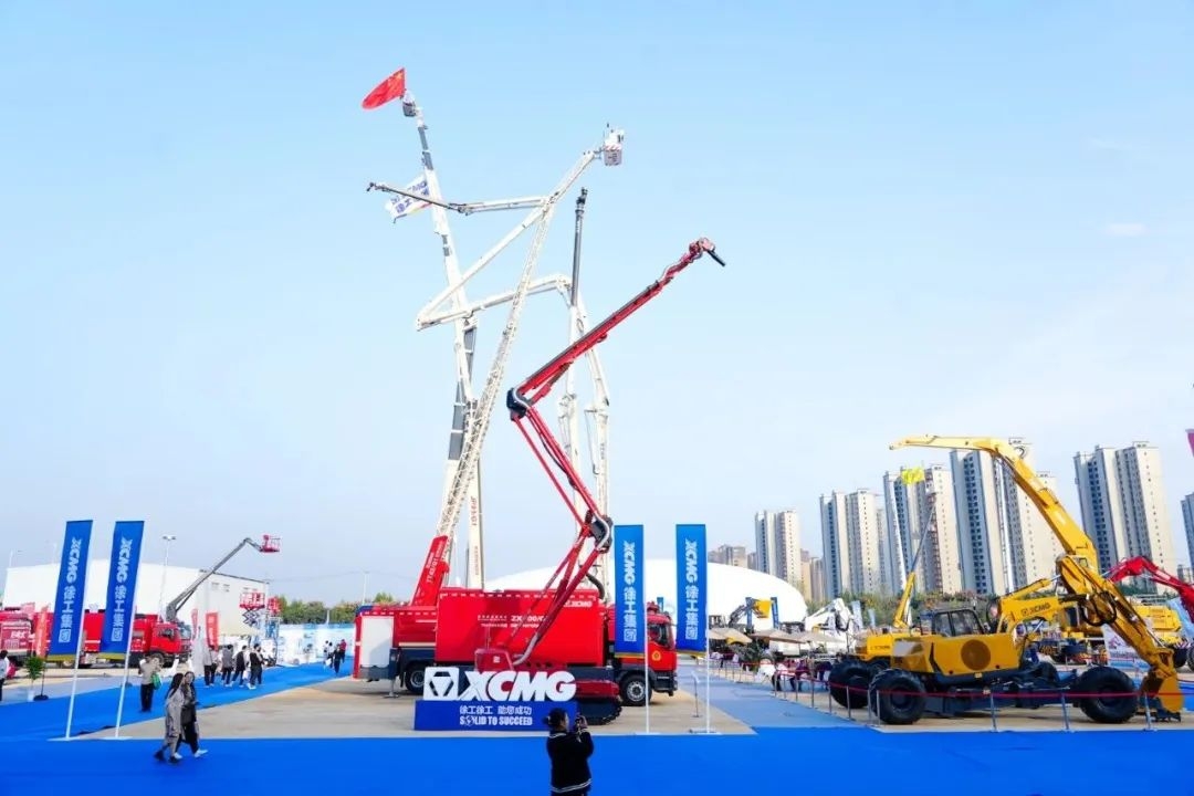 室外展场,徐工消防“全球第一高”DG101登高平台消防车和“行业最高”40米级直曲臂消防车YT42G1,成为展场人气顶流。DG101登高平台消防车,集成徐工五大核心技术,在臂架强度、伸缩效率、微动性和安全性等方面全面升级。