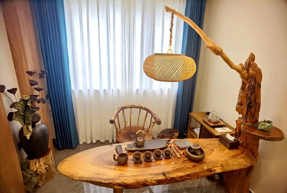 民宿共有客房12间,公共区域配有茶室雅间、休息读书区、会议休闲区、空中花园平台餐吧区,可直观园博园山景。