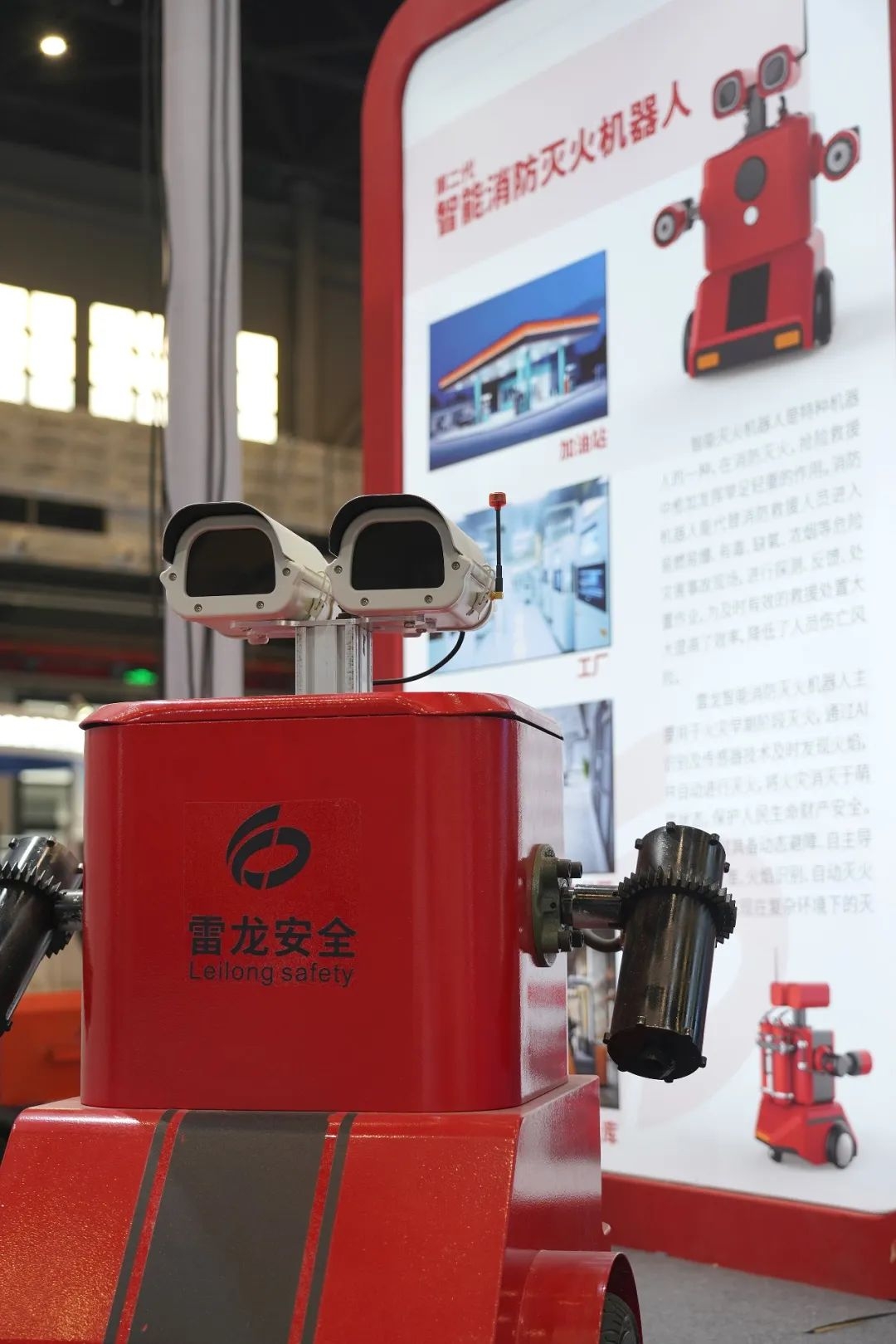 独立式光电感烟探测器、第二代智能灭火机器人、燃气报警探测器……在江苏雷龙安全消防器材有限公司展区,消防应急智能产品琳琅满目。