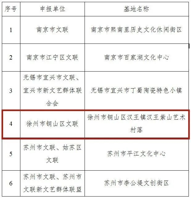 11月7日,经申报推荐、专家评审、公示等程序,江苏省文联最终确定在南京、无锡、苏州等3城6地建立江苏省“文艺两新”首批实践基地。其中,徐州市铜山区汉王镇汉王紫山艺术村落上榜。
