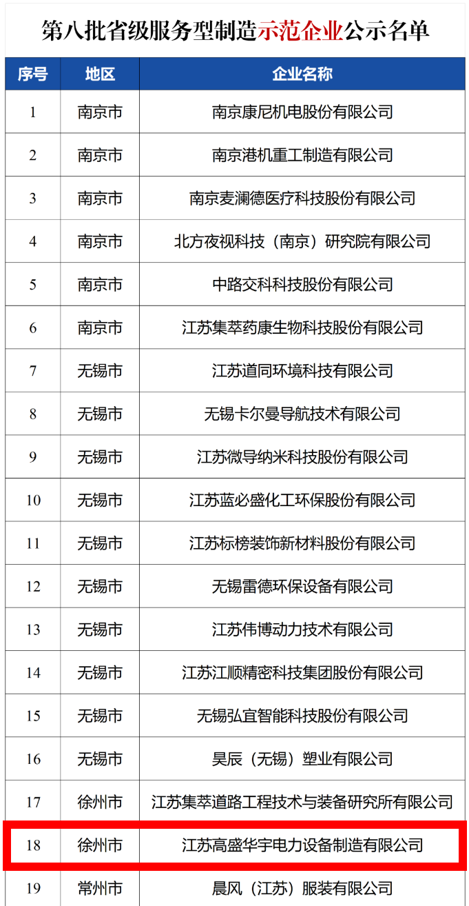 关于第八批江苏省服务型制造示范企业(平台)名单的公示