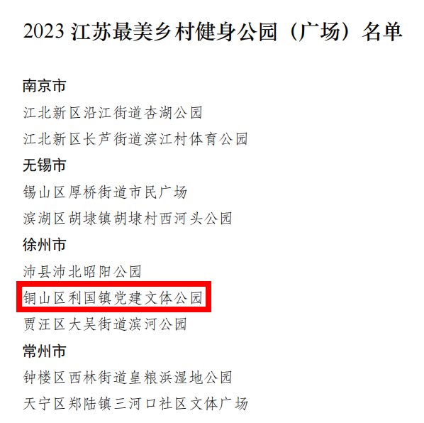 铜山区利国镇党建文体公园入选