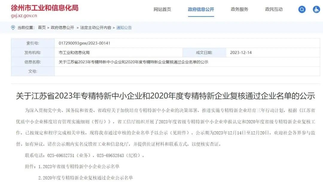徐州市工信局公示了