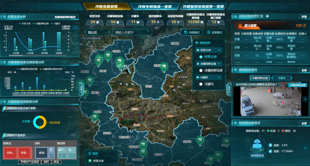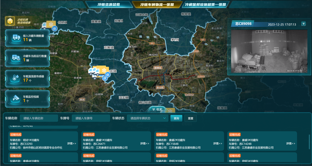 项目覆盖全区24家冷藏保鲜设施经营主体(示范家庭农场、农民合作社示范社)、对接43座鲜活农产品冷藏保鲜设施、13辆农产品冷藏运输车,建成集冷链物联网智能环境采集控制系统、视频监控系统、冷藏车辆管理监测系统、智慧仓储物流管理系统、冷库租赁信息管理系统、智慧冷链数据驾驶舱等于一体的冷藏保鲜设施数字化服务平台。