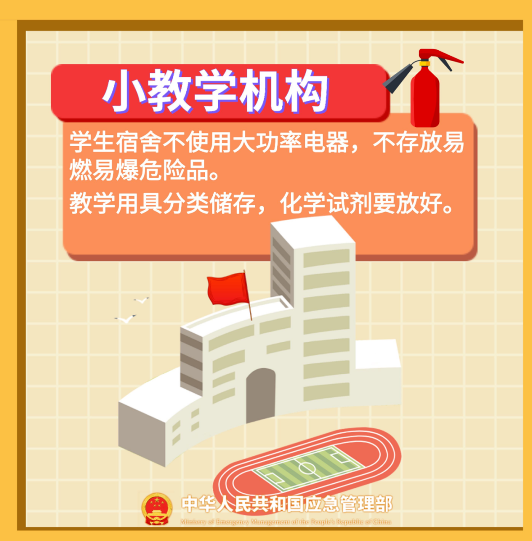 通知强调,严格按照教育部办公厅、应急管理部办公厅印发的《校外培训机构消防安全管理九项规定》要求,逐条对照排查,重点关注消防安全主体责任、场所消防安全设置和消防器材管理、火灾危险源管理、消防安全疏散条件、日常防火检查巡查等方面,尤其对电气线路、燃气管道、供暖设施、电器使用等方面加大检查力度。