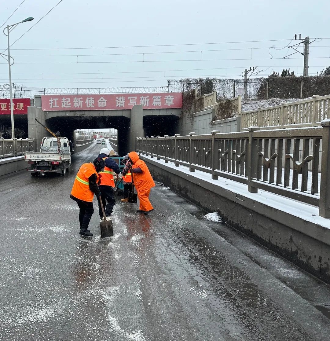 区城管局迅速启动气象灾害应急预案,组织环卫人员深入辖区主要街道、交叉路口以及人流密集区域,开展扫雪、铲冰工作,同时,组织应急救援队伍对辖区内的主次干道及背街小巷进行不间断巡查,全力排查安全隐患。