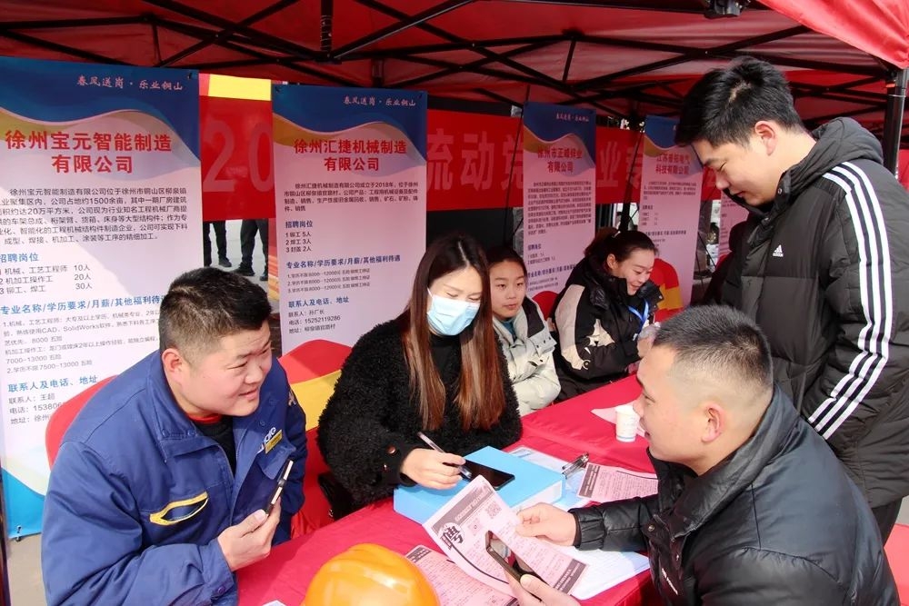 本场东北片区乡镇巡回招聘会,由柳泉镇、利国镇、茅村镇、沿湖街道共同组织了贝汇特机械制造科技(徐州)有限公司、徐钢集团、徐州天盈机电有限公司、江苏华升面粉有限公司等63家优质本土企业参会,共提供销售经理、操作工、业务员等1000余个就业岗位。