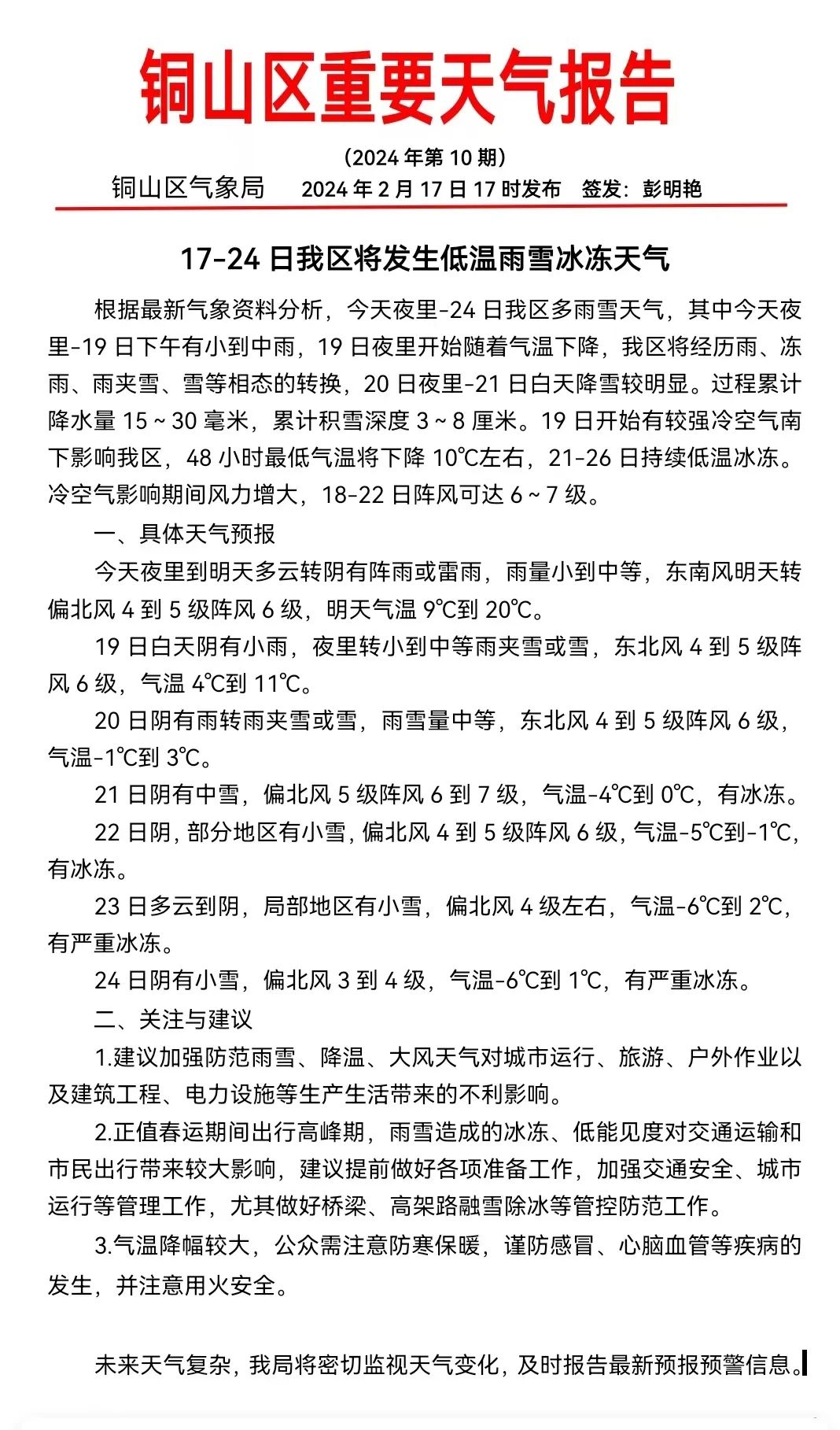 铜山气象台18日7时发布:今天白天到夜里阴有阵雨或雷雨,雨量小到中等,东南风转偏北风4到5级,气温9℃到20℃。19日多云到阴,偏北风5级阵风6到7级,气温3℃到12℃。
