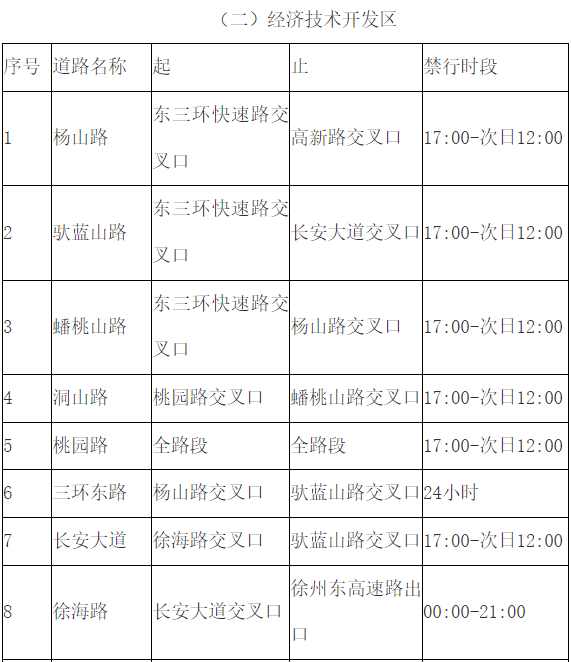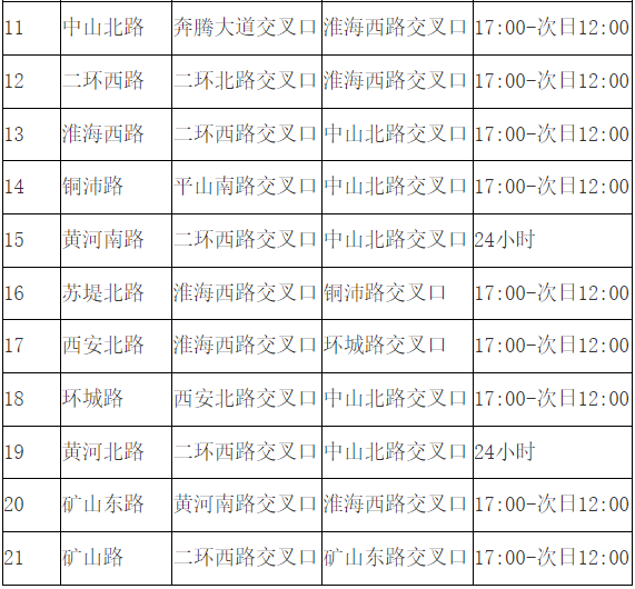 二、限行路段及时段