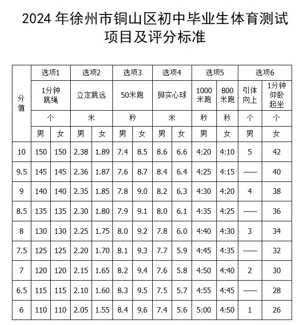 2024年铜山区初中毕业生,经体检能参加者均参加体育考试。