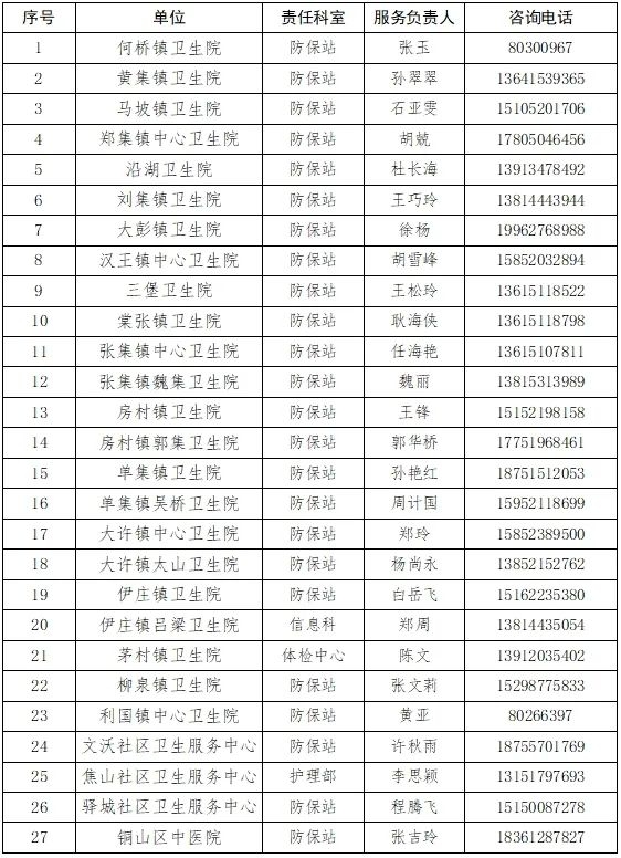 具体时间、地点请咨询常住地卫生院(社区卫生服务中心),单位名单附后。
