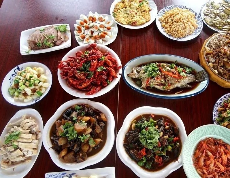 还有微山湖湖鲜:四孔鲤鱼、杂草丸子、荷叶包肉、炸荷花、微山湖湖虾、小龙虾、螃蟹、野生麻鸭、烧杂鱼、昂刺鱼汤、红烧鳝鱼、素炒菱角、清炒藕带等。