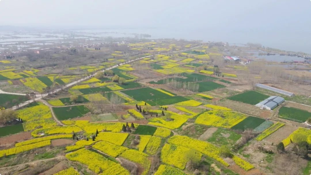 近日,利国镇黄山村百亩400余亩油菜花陆续绽放,花朵错落有致地重叠在一起,与远处的村庄湖畔互相掩映,徜徉在花海中,仿佛走进了金灿灿的油画里。