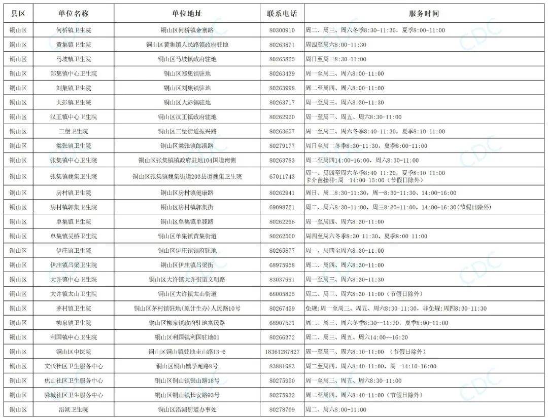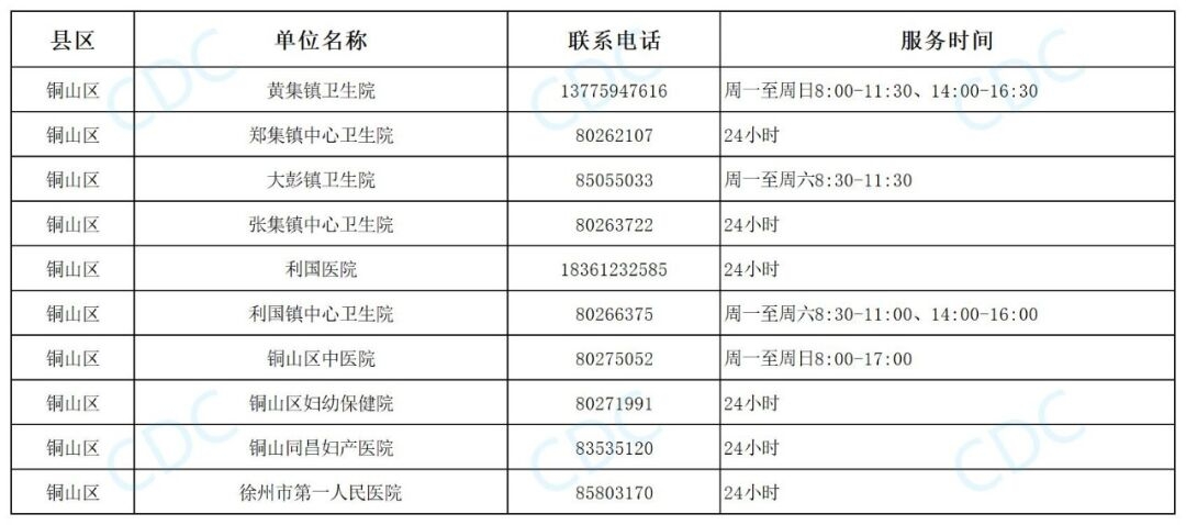 铜山区预防接种门诊信息