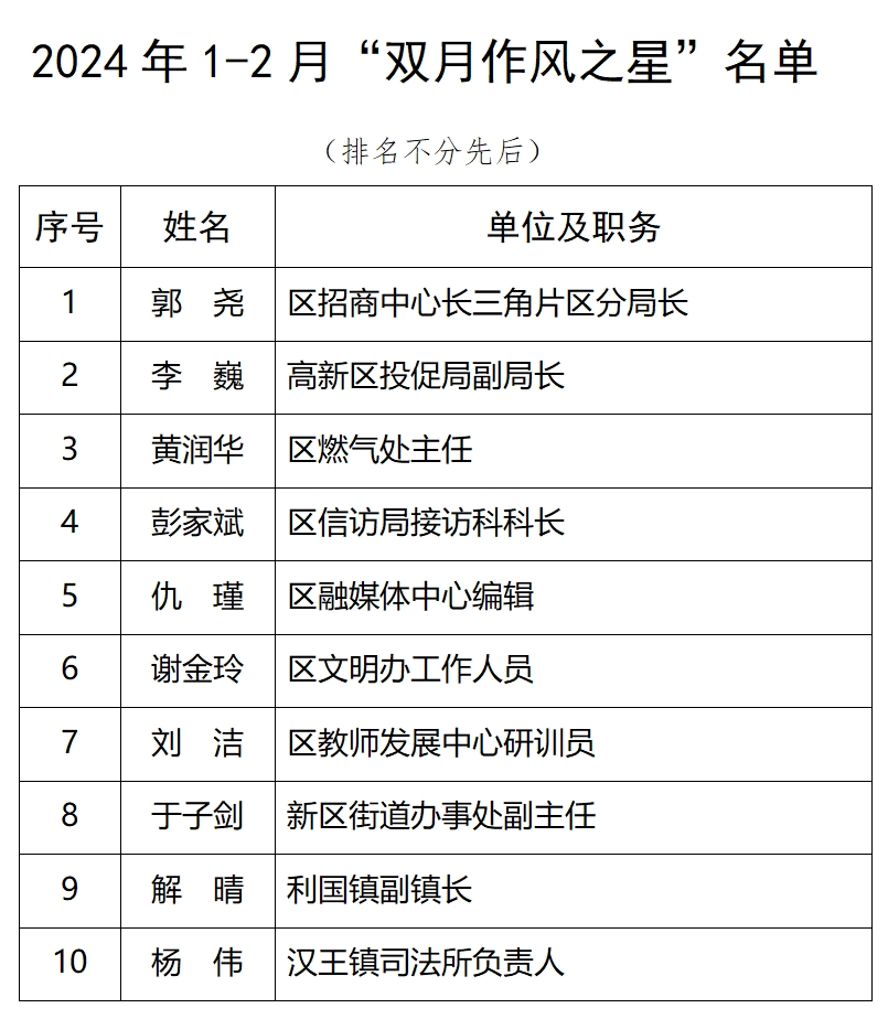 首批“作风之星”名单新鲜出炉!