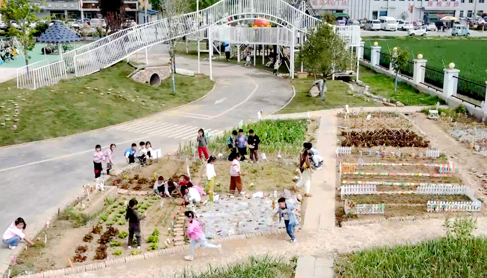 园长许静告诉记者:“幼儿园利用土地空间大的优势,建起了种植园,每个班都在种植园里认领了一块菜地。春生夏长,秋收冬藏……孩子们全程参与,充分享受田园劳动带来的乐趣。”