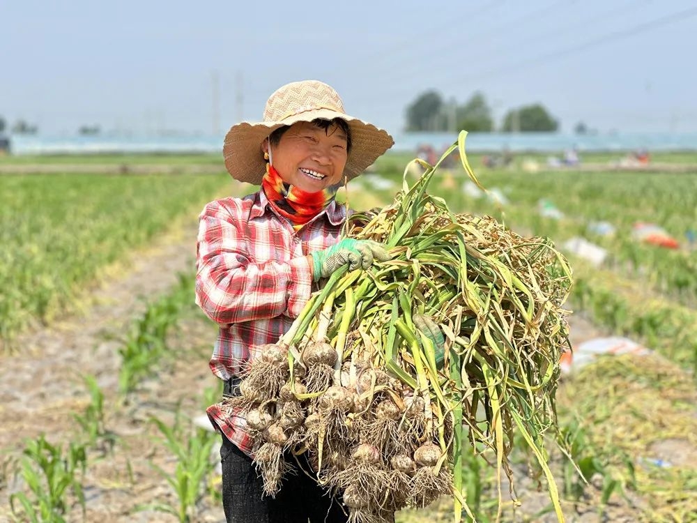 大蒜喜丰收,增收有胜“蒜”。眼下,大许镇近6万亩大蒜陆续迎来了成熟季,在板桥村田地里,到处是农民忙碌收获大蒜的身影,颗颗饱满的大蒜躺了一地,农民们享受着大蒜增产增收带来的喜悦。