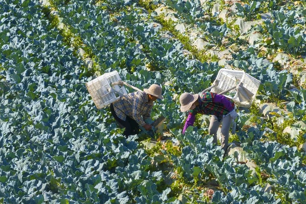 西蓝花采收季,来啦!走进秦水口村(大新庄村的自然村),350亩西蓝花长势喜人,放眼望去,一颗颗深绿色的西蓝花隐藏在片片青翠欲滴的绿叶下,一派绿意盎然、生机勃发的景象。村民们正来回穿梭采摘西蓝花,然后分拣、装筐、转运,每个环节都井然有序,田间地头一派繁忙的丰收景象。