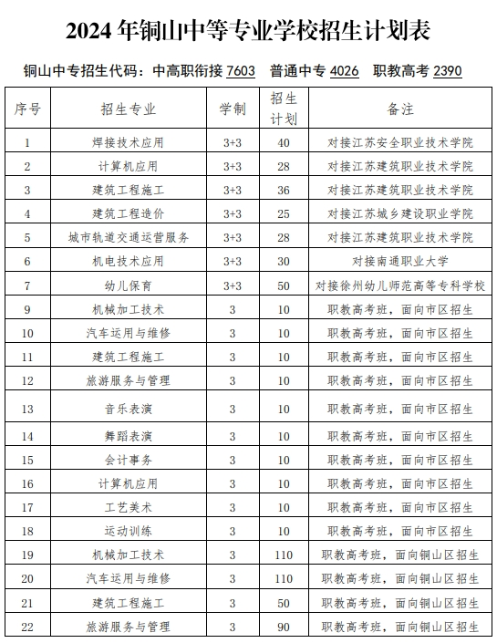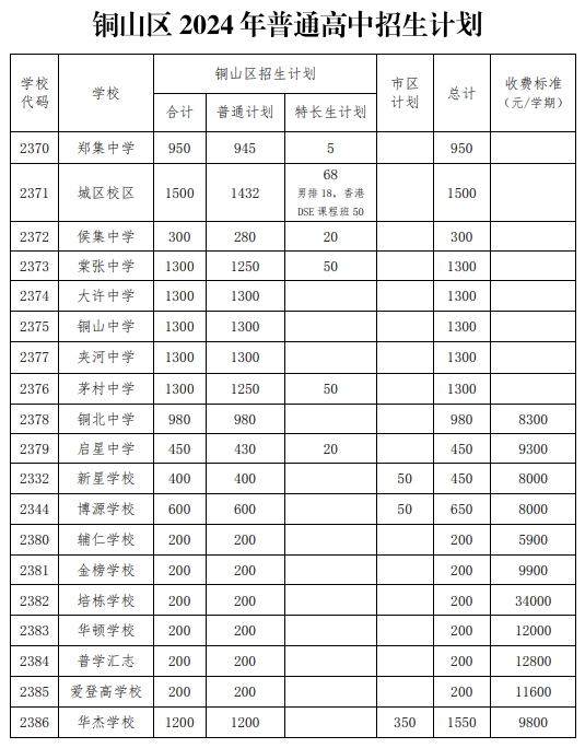 铜山区2024年高中阶段学校招生计划