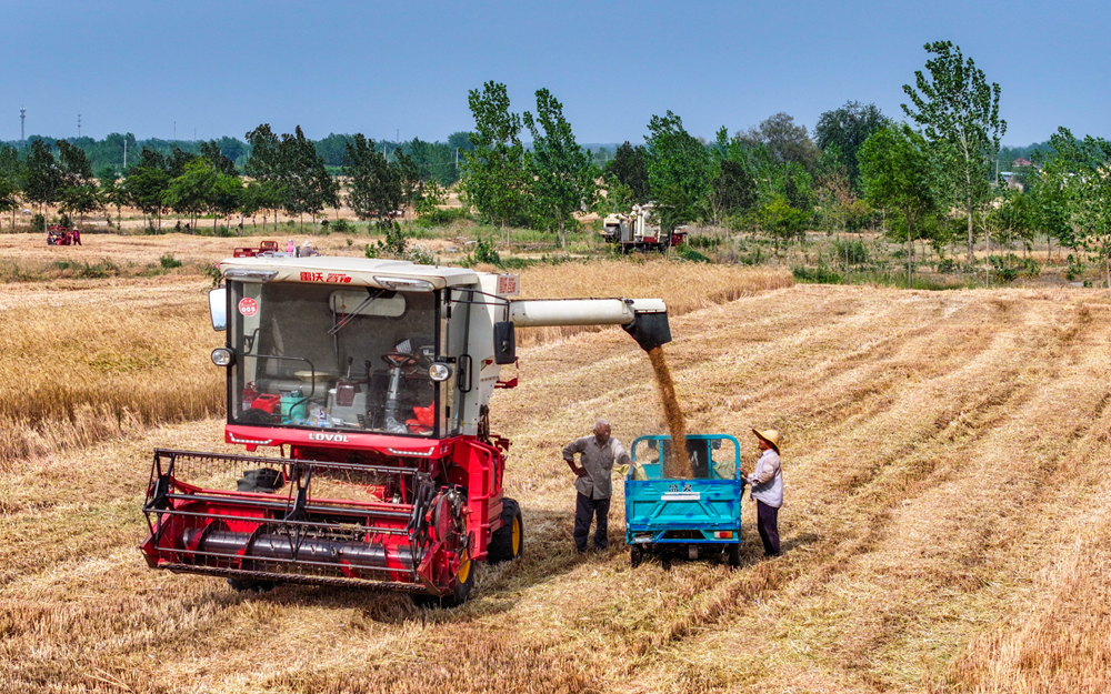 在单集镇姚庄村的麦田里,一台台联合收割机正来回穿梭,农户们忙着运载收获的小麦。据了解,单集镇全镇10万余亩小麦相继成熟,其中山地小麦成熟较早,当地农户抓住天气晴好的有利时机,抢收、抢晒,确保小麦颗粒归仓。