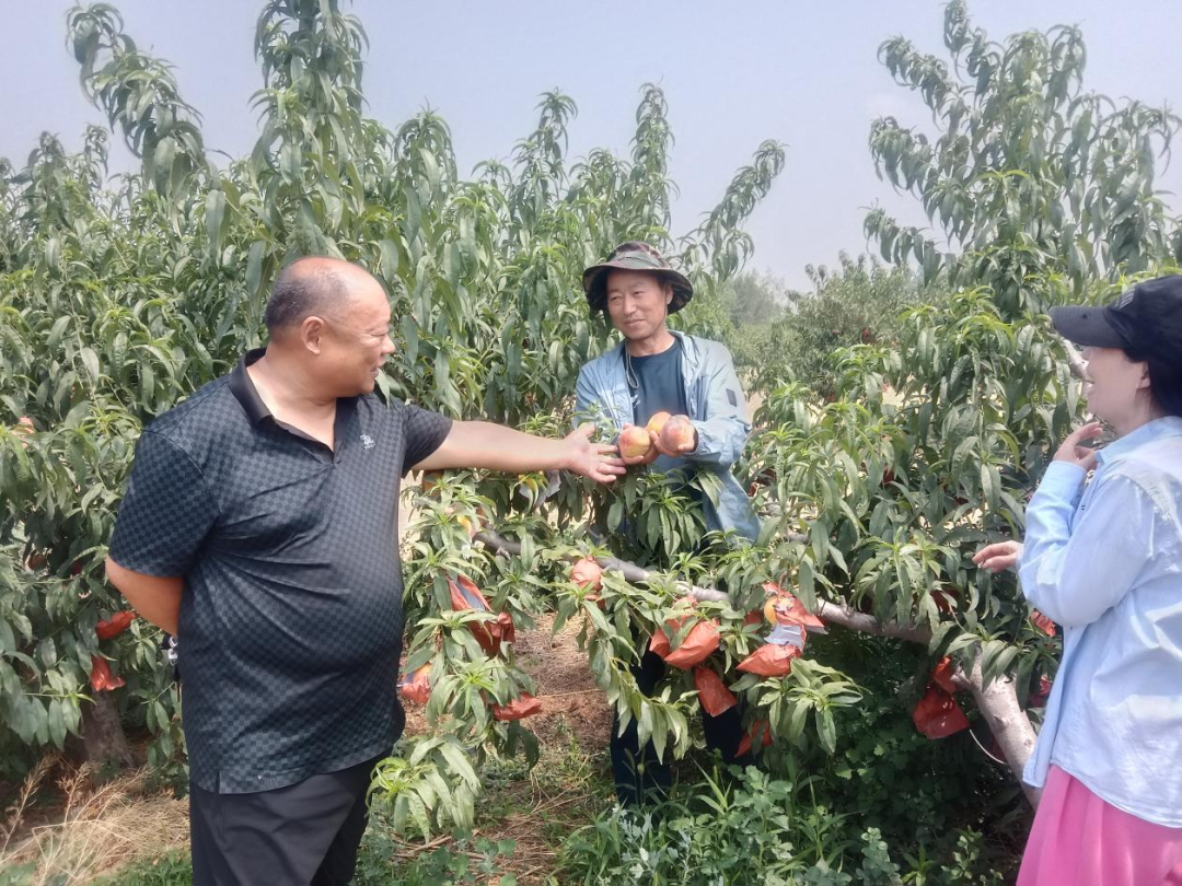 6月19日,东风村党支部书记丁道金来到黄桃种植基地,与管理员交流黄桃种植新技术和“线上+线下”联动销售渠道,以及“合作社+基地+农户”的规模化发展思路和管理经验。截至目前,东风村黄桃种植面积300余亩,每亩产量4000余斤,销售额150余万元,带动周边闲置劳动力200余人。