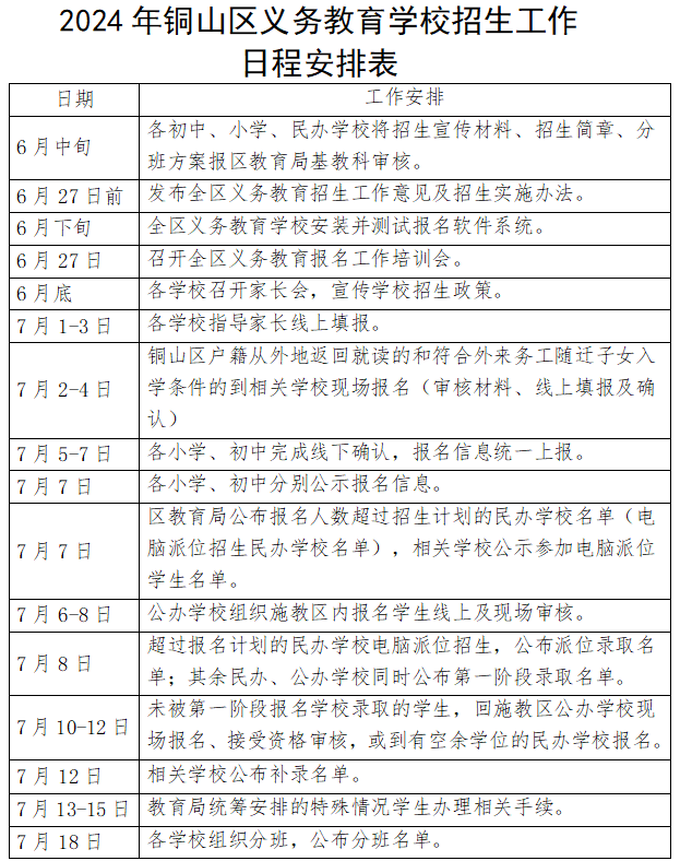 根据《关于印发〈徐州市铜山区2024年义务教育学校招生工作意见〉的通知》(铜教〔2024〕77号)精神,为保证全区义务教育学校招生工作规范有序进行,现制定如下办法。