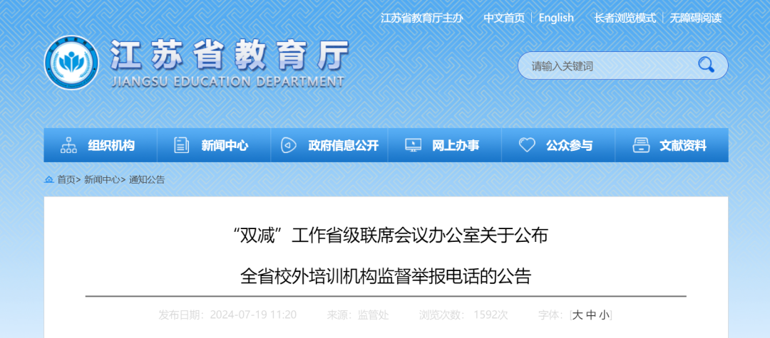 日前,“双减”工作省级联席会议办公室公布全省校外培训机构监督举报电话,涵盖学科类和非学科类。