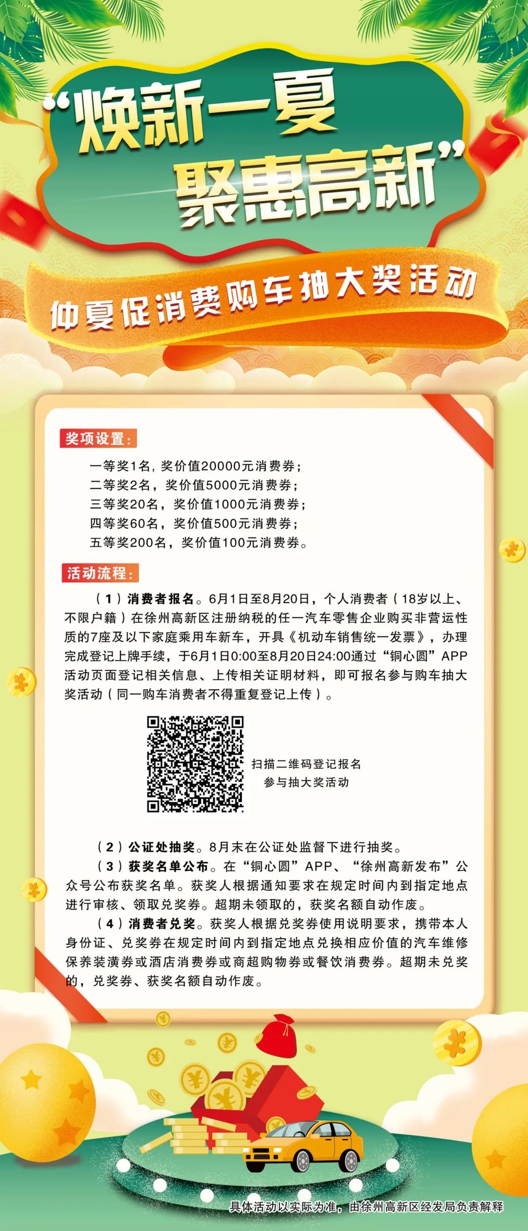 此外,个人消费者报废国三及以下排放标准燃油乘用车或2018年4月30日(含当日)前注册登记的新能源乘用车,并在徐州高新区购买纳入工业和信息化部《减免车辆购置税的新能源汽车车型目录》的新能源乘用车新车享补贴2万元,报废国三及以下排放标准燃油乘用车并在徐州高新区购买2.0升及以下排量燃油乘用车新车享补贴1.5万元。申请资料要哪些、报废回收网点在哪里、申请进度怎么查,更多详情请登录商务部“全国汽车流通信息管理系统”网站或通过抖音、微信、支付宝、云闪付搜索“汽车以旧换新”小程序查询。