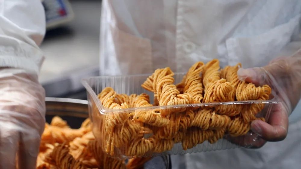 目前,张家生的馓子公司已有3家工厂、200多名员工,去年销售额达3000万元。公司培训出的100多名金丝馓子年轻制作人员,不少学到技术后自主创业,其中已有4人建厂,为金丝馓子技艺的传承发展打下坚实基础。