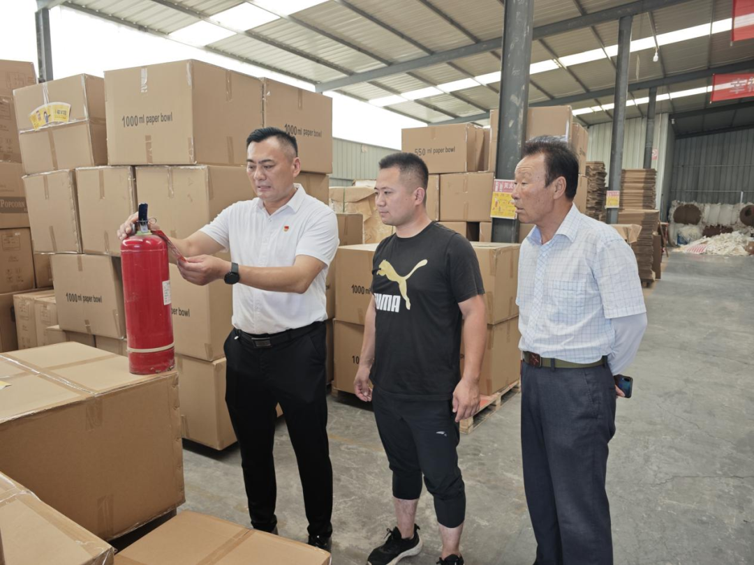 8月14日,河东村党支部书记独永华带队对辖区内重点企业进行消防安全检查。