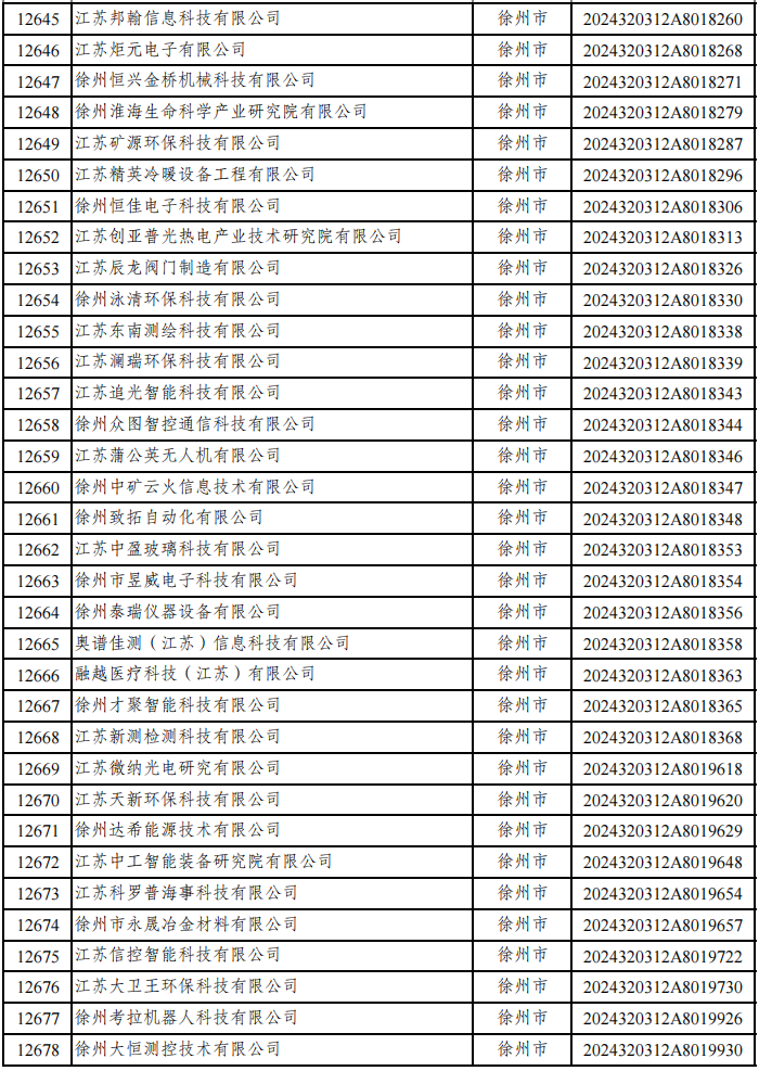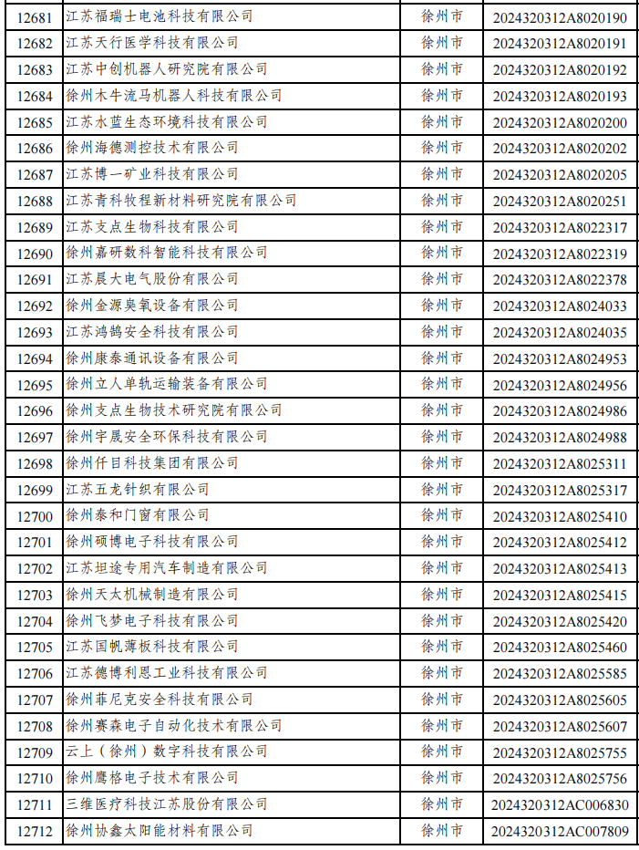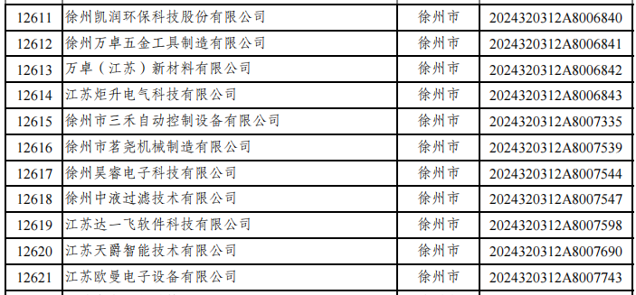 铜山区入选企业