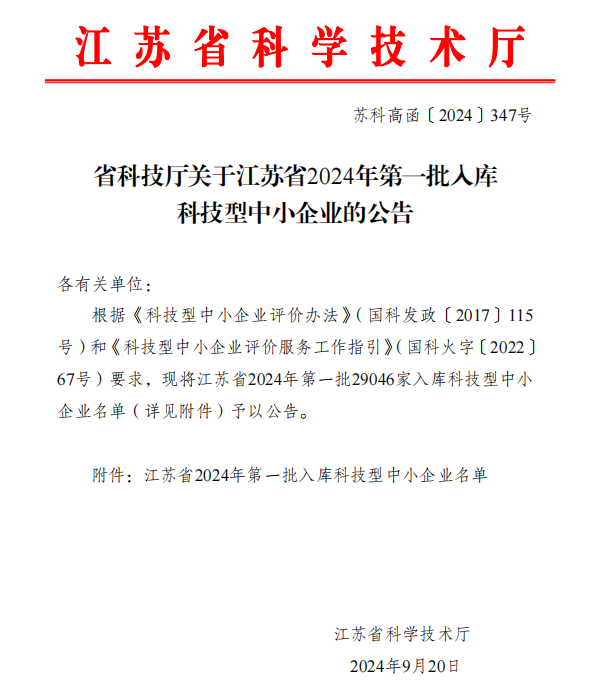 关于江苏省2024年第一批入库