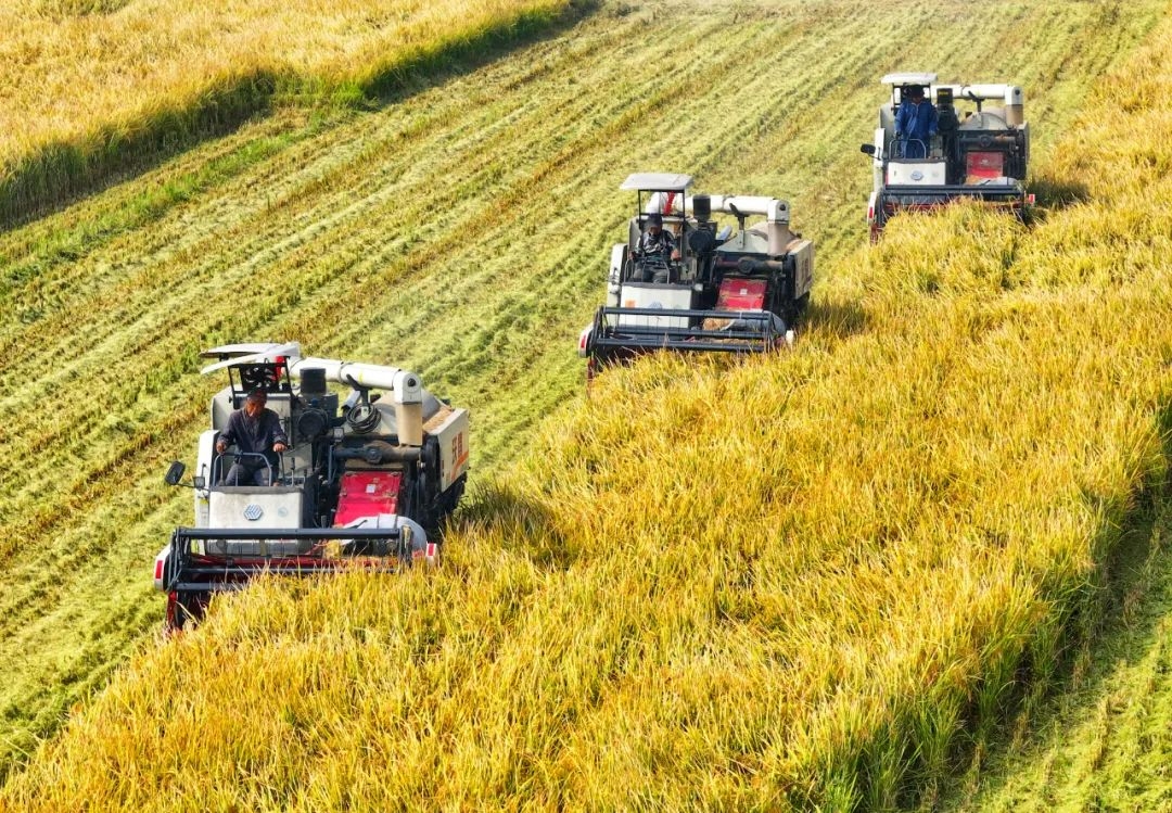 连日来,沿湖街道26400亩水稻迎来成熟收获期,广大种植户抢抓晴好天气收割水稻,确保颗粒归仓。