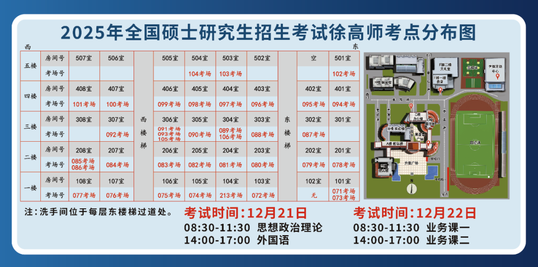1.考生可于考前一天(12月20日)下午15:00-17:00熟悉考点,考点将把考场平面示意图放置在考点大门外供考生查看。