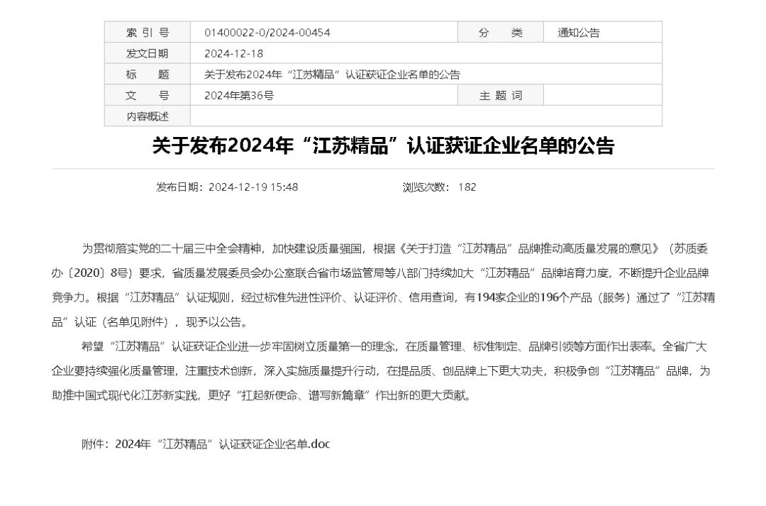 “江苏精品”品牌建设工作是江苏省在新形势下参照国际惯例、运用市场机制推进品牌战略的一项开拓性工作,其主要目的就是以标准为引领、以认证为手段,通过对符合高标准、高品质要求的产品和服务进行第三方认证,推动形成一批自主创新、品质高端、 服务优质、信誉过硬、市场公认的“江苏精品”品牌群体。