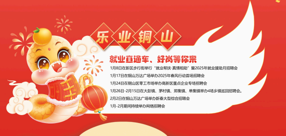 1月26日-2月15日,在大彭镇、茅村镇、郑集镇、单集镇举办4场乡镇巡回招聘会。