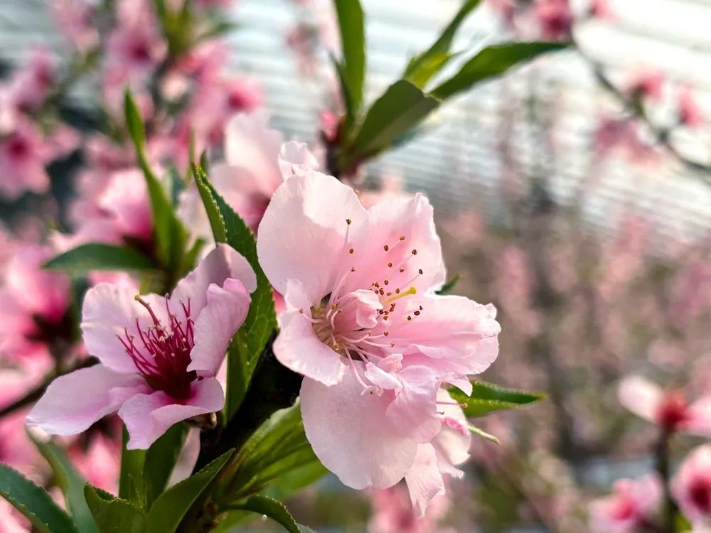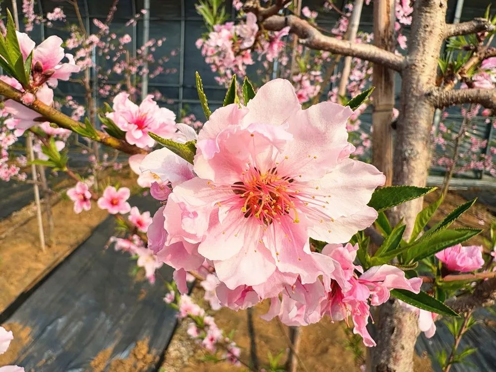 眼下的室外春寒料峭,但在新区街道梁庄村的徐州邓氏家庭农场先丰采摘园里却暖意融融,粉红色的桃花竞相开放、挂满枝头,传递着春天的气息。