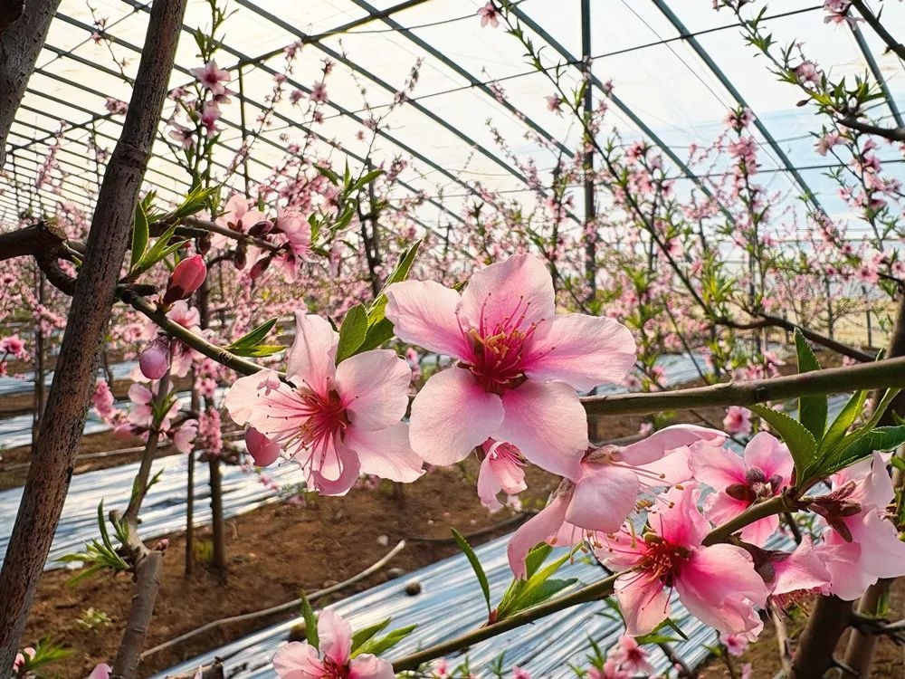 记者在邓先锋的温室大棚里看到,桃树整整齐齐排列着,一朵朵、一簇簇粉红色的桃花娇艳动人。桃花盛开的美景,让邓先锋对今年丰产丰收充满了希望。今年,邓先锋种植了4个大棚2000多棵桃树,预计5月中旬进入成熟上市期。